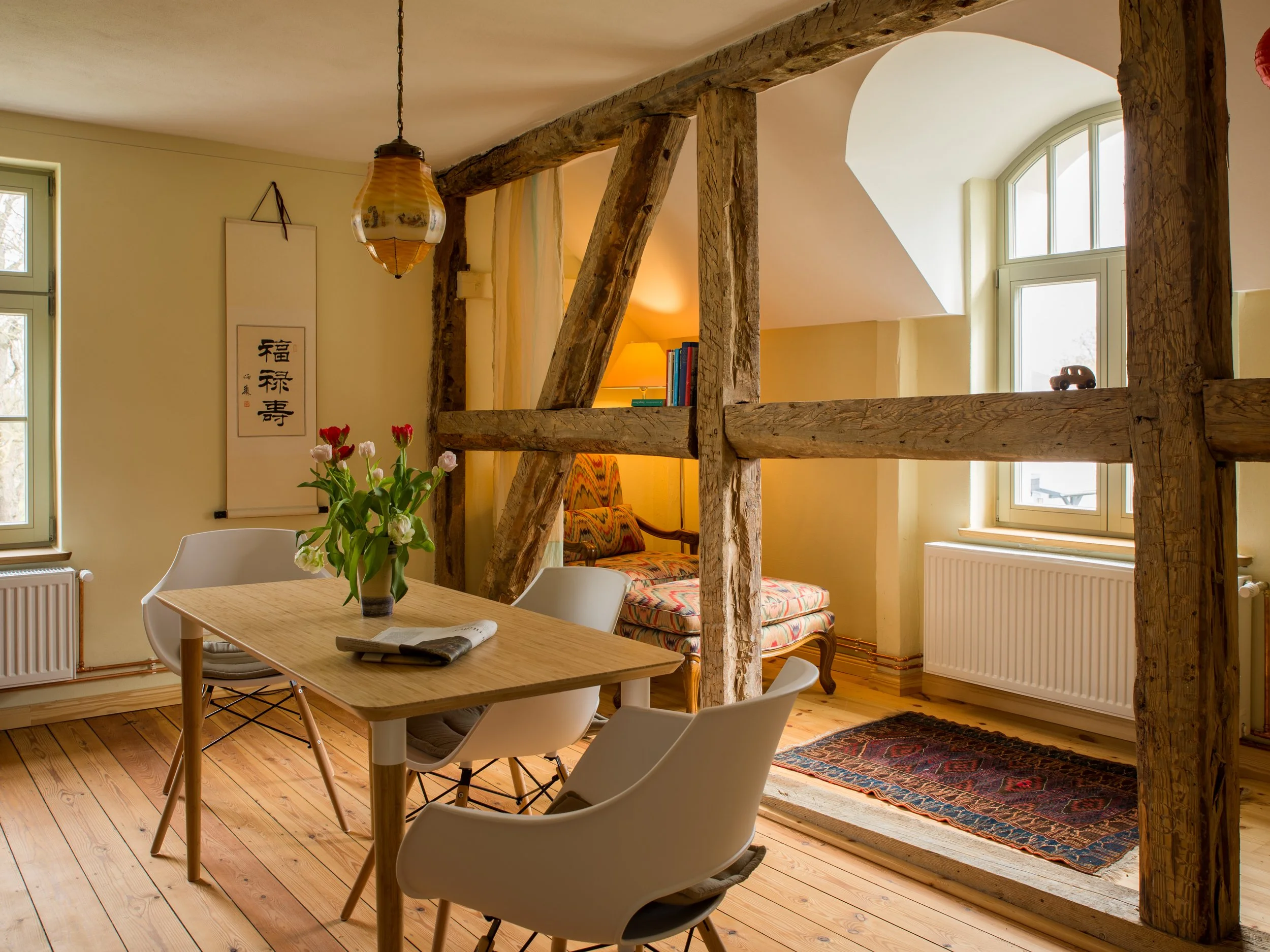 Extras: In den Wohnungen 1,2,3 und 5 bildet offenes Fachwerk gemütliche Abseiten. Wohnung 1 und 2 und Wohnung 4 und 5 können jeweils zu einer gemeinsamen großen Wohnung verbunden werden.