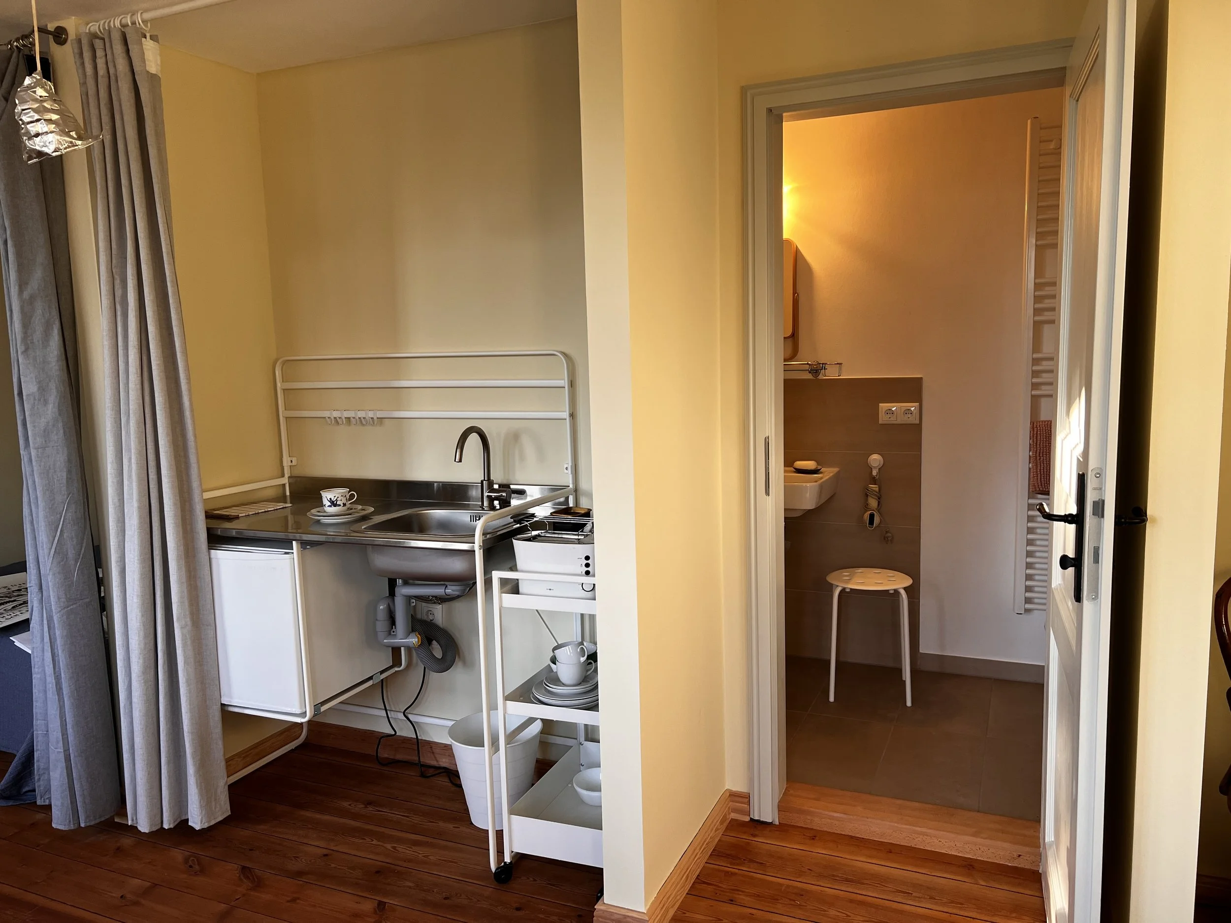 Raum mit Pantry und französischen Bistromöbeln, Bad, Wlan -
